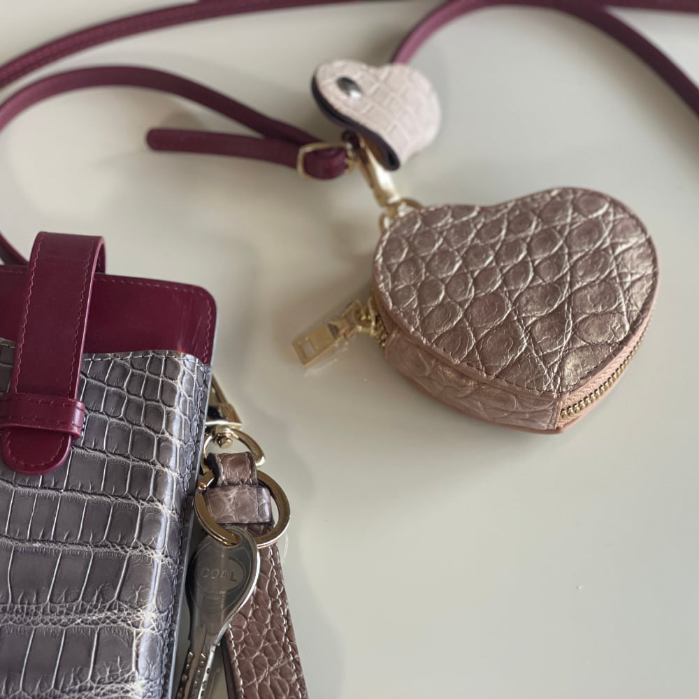 ハート型でかわいいコンパクトなコインケース。